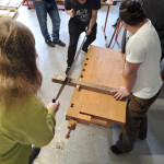Im Anschluss wurden unsere Gäste schon von den angehenden Tischler/-innen im 3. Ausbildungsjahr erwartet. Neben einer eindrucksvollen Sammlung von Werkzeugen, demonstrierten die Azubis typische Aufgaben wie Hobeln und Sägen. Auch hier konnten die interessierten Schüler/-innen sofort selber Hand anlegen. Ein Quiz zu Holz- und Baumarten und Infos zu technischem Zeichnen durften nicht fehlen.