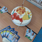 Nach einer kurzen Pause hielten die Medizinischen Fachangestellten des 1. Ausbildungsjahres zunächst eine Präsentation mit Informationen zum Beruf und im Anschluss ein Escapegame für unsere Besucher/-innen bereit. Dabei begleiteten sie einen Patienten vom Empfang in der Arztpraxis, über das Wartezimmer und dem Behandlungszimmer bis zum Labor und lösten dabei kleine Rätsel. So konnte am Ende eine Diagnose erstellt werden und zur Belohnung gab es ein Stück Kuchen, das dekoriert war mit Puddinggehirn und Puddingblut.