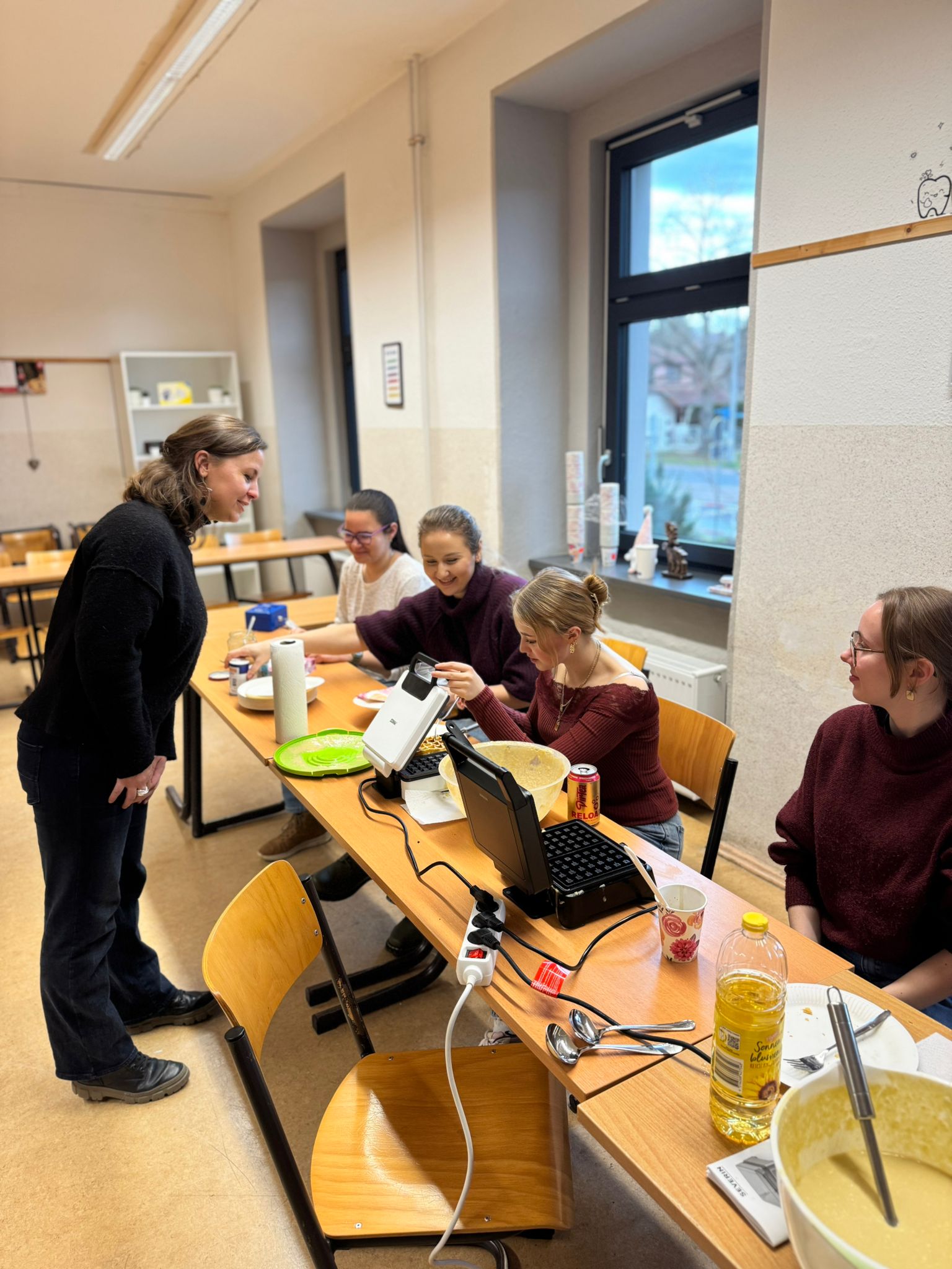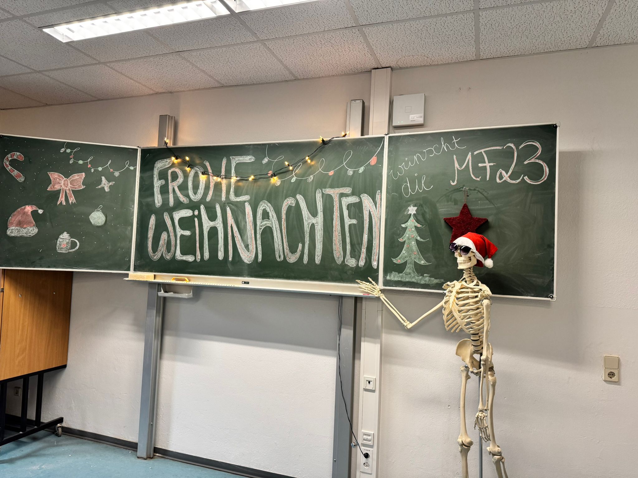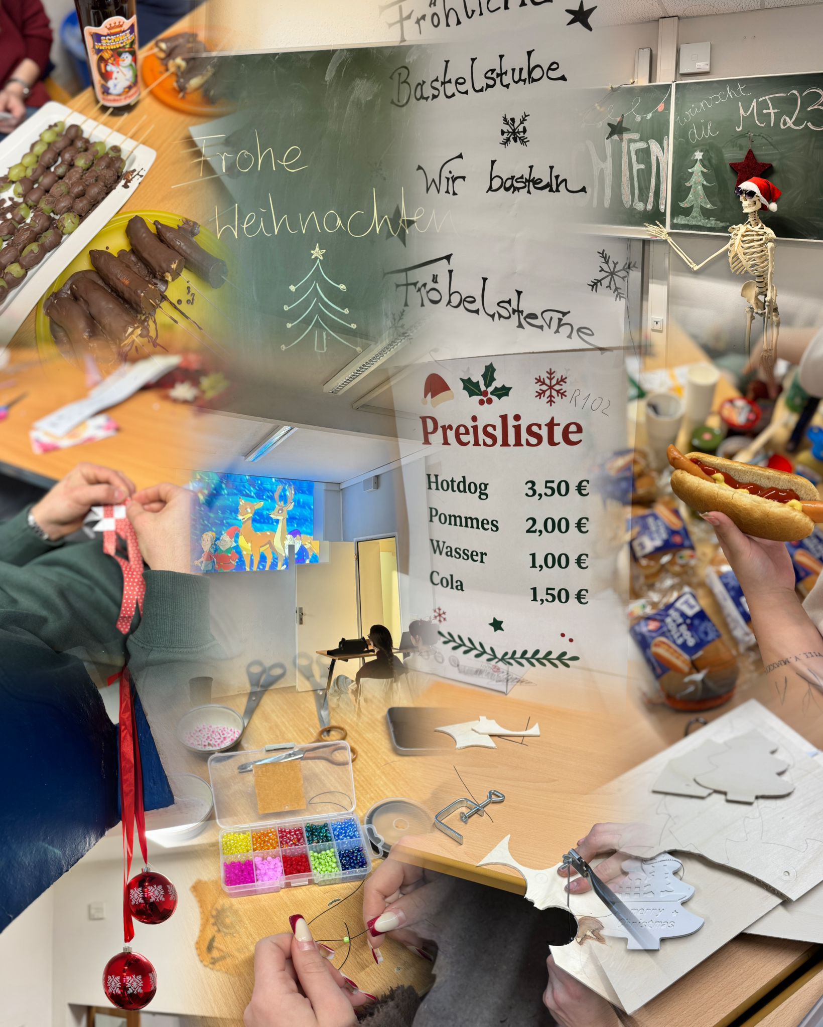 Der diesjährige Weihnachtsmarkt an den Berufsbildenden Schulen „Geschwister Scholl“ am Standort Halberstadt bot Schülerinnen und Schülern, Lehrkräften sowie Gästen eine stimmungsvolle Gelegenheit, die Vorweihnachtszeit gemeinsam zu genießen und das Jahr feierlich ausklingen zu lassen. Mit großem Engagement beteiligten sich zahlreiche Klassen an der Gestaltung des Marktes. Für das leibliche Wohl sorgten verschiedene Klassen mit einem vielseitigen Angebot. Die Klasse ZF25 verwöhnte die Gäste mit frisch gebackenen Waffeln, serviert mit Puderzucker oder selbstgemachtem Apfelmus. Die Klasse SF25 bot schokolierte Früchte sowie Kinderpunsch an und organisierte zusätzlich ein Weihnachtskino. Bereits am Vormittag bereitete die Klasse EQ25 Hot Dogs und Pommes zu, die den ganzen Tag über großen Anklang fanden. Für herzhafte Grillspezialitäten sorgten unser Hausmeister Herr Schmidt sowie der Schulsozialarbeiter Herr Kallenberger. Neben kulinarischen Angeboten standen auch kreative Aktivitäten im Mittelpunkt. Die Klasse MF23 ermöglichte das Basteln von Fröbelsternen. Gemeinsam mit der Klasse FR25 wurden Armbänder angefertigt und mit der Klasse TI24 konnte Baumschmuck gestaltet und anschließend in der Klasse FM24 bemalt werden – ideal auch als individuelles Weihnachtsgeschenk. Für einen ruhigen Ausklang des Tages stellte die Klasse FH25 verschiedene Gesellschaftsspiele wie Dart, UNO und Tischbillard bereit. Ein besonderer Höhepunkt war das alljährliche Treppensingen, bei dem sich alle anwesenden Klassen und Lehrkräfte zu einem gemeinsamen Chor versammelten. Mit bekannten Weihnachtsliedern wie „In der Weihnachtsbäckerei“ und „Jingle Bells“ wurde eine festliche Stimmung geschaffen. Instrumental begleitet wurden die Sängerinnen und Sänger von Frau Baumann und Herrn Kallenberger. Der Weihnachtsmarkt war insgesamt ein voller Erfolg und spiegelte den starken Gemeinschaftssinn der Schule wider. Er bot allen Beteiligten eine gelungene Einstimmung auf die Weihnachtszeit und einen würdigen Abschluss des Jahres.