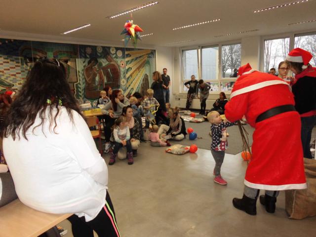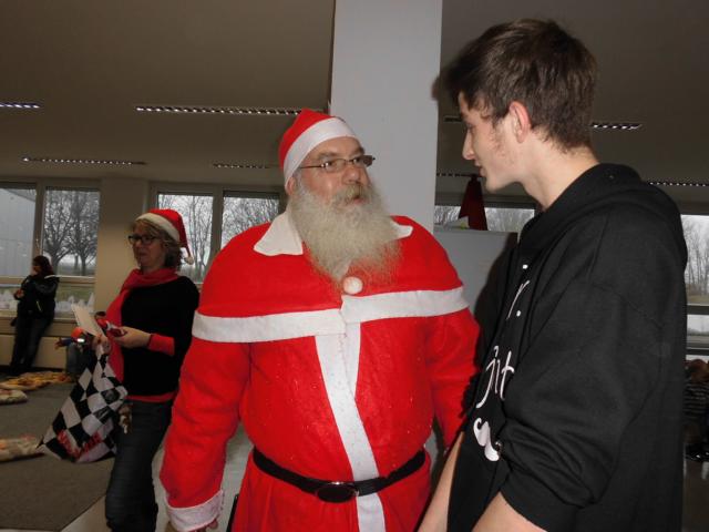 So ließ er auch nicht lange auf sich warten. Mit dem Schallen der Glöckchen stand er auf einmal im Raum umgeben von Kindern und Schülern, mit dem Ziel seine Geschenke zu verteilen. Die Kinder bekamen jeweils kleine Geschenke und auch die großen „Kinder“ kamen nicht zu kurz. Zweimal kam leider auch die Rute zum Einsatz.