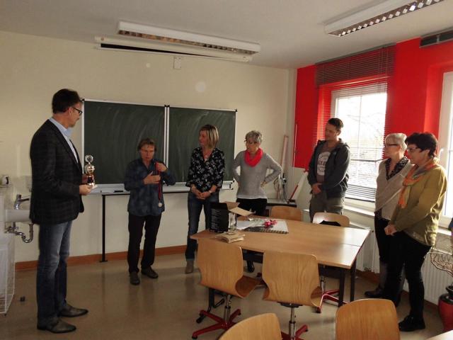 Dieses Jubiläum nahm das erweiterte Schulleitungsteam gemeinsam mit den Sekretärinnen und den Hausmeistern zum Anlass, die von ihm für unsere Schule geleistete Tätigkeit und die Zusammenarbeit innerhalb des Leitungsteams zu würdigen und ihm auf "sportliche" Art Danke zu sagen.