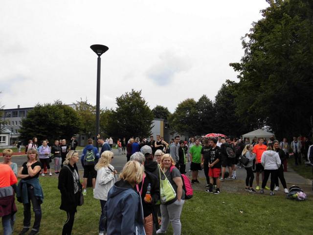 Nach einer kurzen Eröffnungsansprache durch den Schulleiter und einer Aufwärmphase für Schüler und Lehrer, die durch schweißtreibende Zumbarhythmen vorangetrieben wurde, konnten die Spiele beginnen.