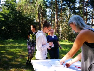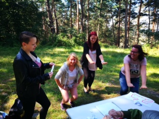 Wir sind von der Schule aus mit dem Bus nach Langenstein gefahren. Vor Ort wurden wir in verschiedene Gruppen aufgeteilt. Jeder bekam einzelne Kärtchen für unsere jeweiligen Namen und Gruppen. Vorher gab es ein Quiz, wo wir unser Allgemeinwissen testen konnten. Einige Fragen bezogen sich auch schon sehr auf unseren Beruf, den wir erlernen. Nach und nach wurden die Gruppen losgeschickt. An der ersten Station sollten wir ein Quiz lösen. Auch hier waren die Fragen wieder auf die Ausbildung bezogen. Danach kam eine Station, die sich rund um das Thema Pflegen und Wickeln der Kinder drehte. Dort waren Puppen aufgebaut, die gewindelt und eingecremt werden sollten. Weiter ging es an einen Stand, wo ein großes Puppenhaus aufgestellt wurde. In ihm befanden sich verschiedene Bilderkärtchen, die mit Begriffen sowie Bildern versehen wurden. Ziel war es, alle Dinge, die zu dem Babyzimmer gehörten, an der Wand anzubringen und die anderen außen vor zulassen. Bei der nächsten Station bekamen wir eine ähnliche Aufgabe wie schon eben erwähnt, dieses Mal waren es aber nur Wörter, die zugeordnet werden sollten. Gleich im Anschluss haben wir noch instrumentale Kinderlieder gehört, die wir erraten sollten. Dann kamen wir zur Schmeck - und Gehörstation, wo einige Geschmacksrichtungen von Babybrei erschmeckt werden sollten und die Geräusche jeweils zugeordnet wurden. Später wurden unser sportliches Können gefördert und unter Beweis gestellt. Wir mussten unter anderem auf einem Bein springen, Liegestütze machen, im Kreis drehen und weiteres. Dabei musste ein Gruppenmitglied immer einen Begriff erklären. Danach ging es zum Würfelspiel. Je nach Zahl musste einer nach dem anderen entweder Tiergeräusche nachahmen oder Begriffe erklären, auch rückwärts Wörter buchstabieren war die Aufgabe. Die vorletzte Station wollte, dass die Gruppe Instrumente zuordnet und den Text von einem sehr bekannten Lied namens ´´Hänschen klein´´ in der richtigen Reihenfolge zusammen legt. Als letztes wurde am Zielort noch ein kleines Quiz gemacht und zu guter Letzt sollte noch ein Text von Till Eulenspiegel ausgefüllt werden. In der Zeit, während die Punkte gezählt wurden und ausgewertet wurden, gab es Schmorwurst und Obst für alle. Bei der Siegerehrung gab es sehr praktische Preise wie Gutscheine, die in dem jeweiligen Unterricht eingelöst werden konnten. Alles in allem fand ich den Wald Tag sehr gelungen. Die Stationen waren sehr spaßig, es gab viel zu lachen und vieles, was man in dem Beruf wissen musste, wurde spielerisch in den Stationen verpackt.