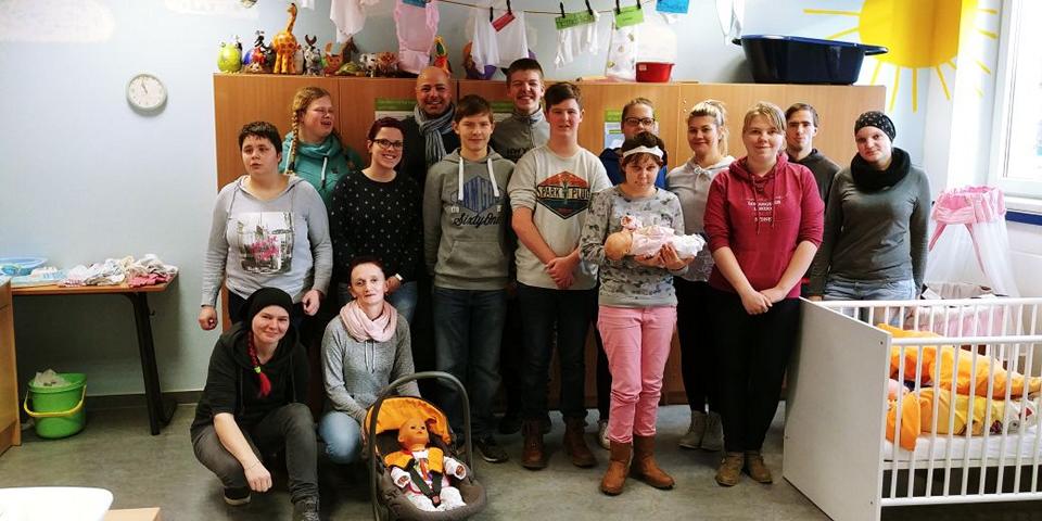 Am 19.01.18 bekamen wir Besuch von der Reinhard- Lakomy- Schule Halberstadt, um das Projekt „Mit einem Kind leben“ zu unterstützen. Als die Klassenlehrerin Frau Großmann anfragte, ob wir unser Wissen über Säuglingspflege an ihre acht Schüler/innen weitergeben würden, zögerten wir nicht.