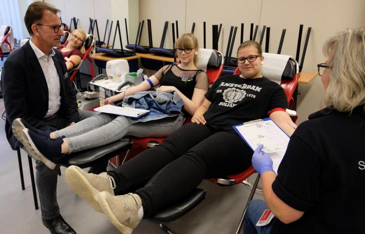 In diesem Jahr spendeten 96 Schülerinnen und Schüler, 77 davon das erste Mal. Da Blut nicht künstlich erzeugt werden kann, ist und bleibt das Blutspenden lebensnotwendig. Wir sagen daher allen Blutspenderinnen und Blutspendern, die mit ihrer Spende helfen, Leben zu retten „Danke“.