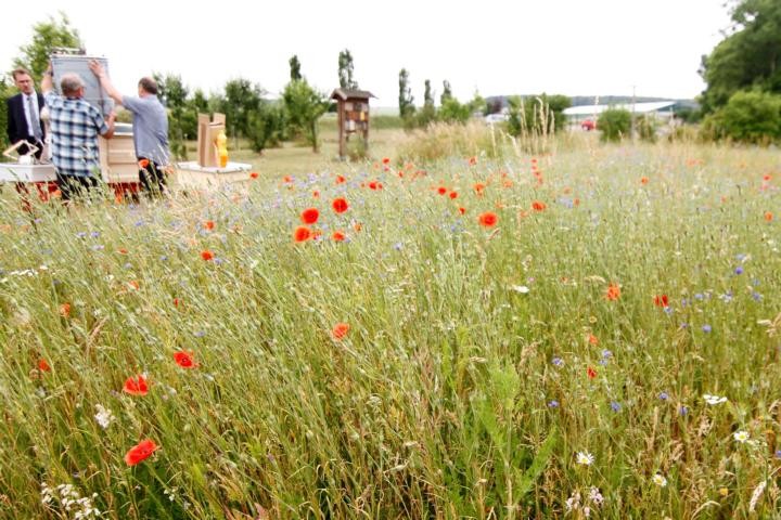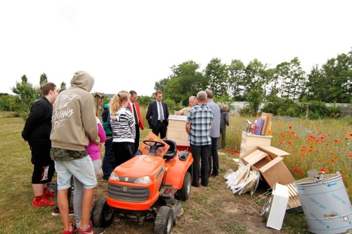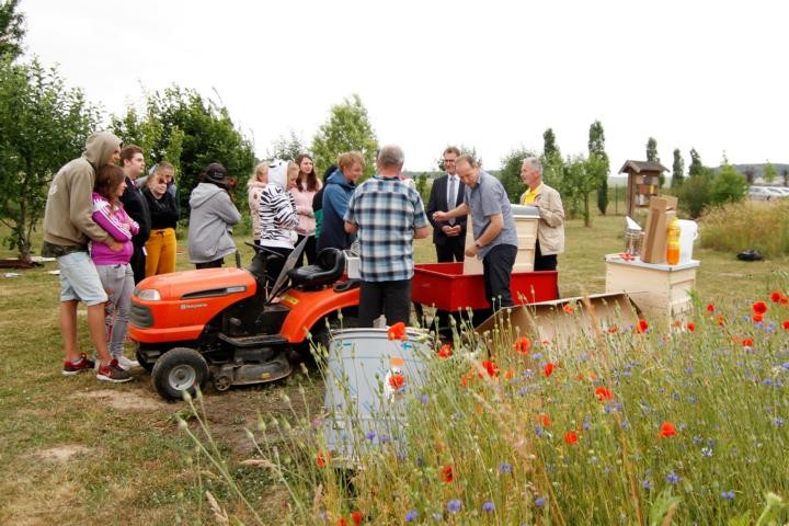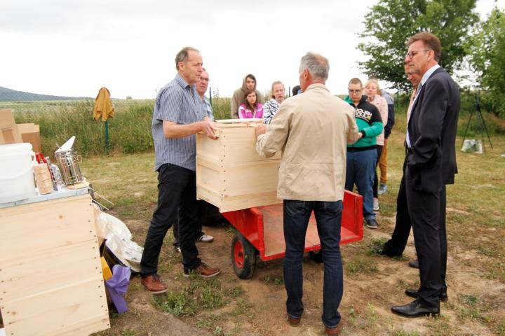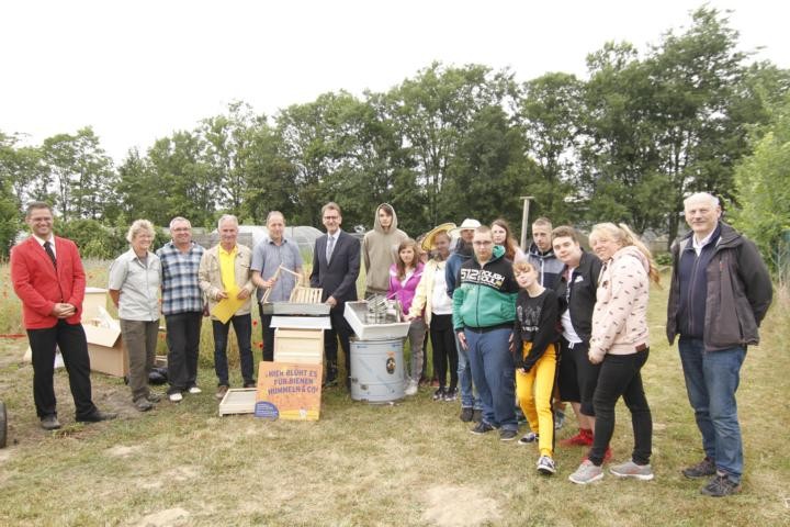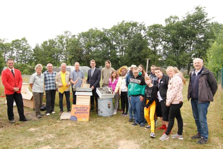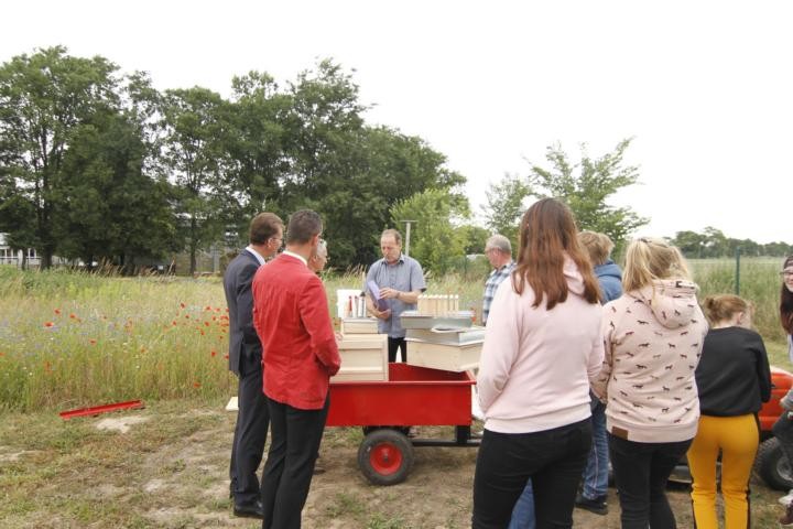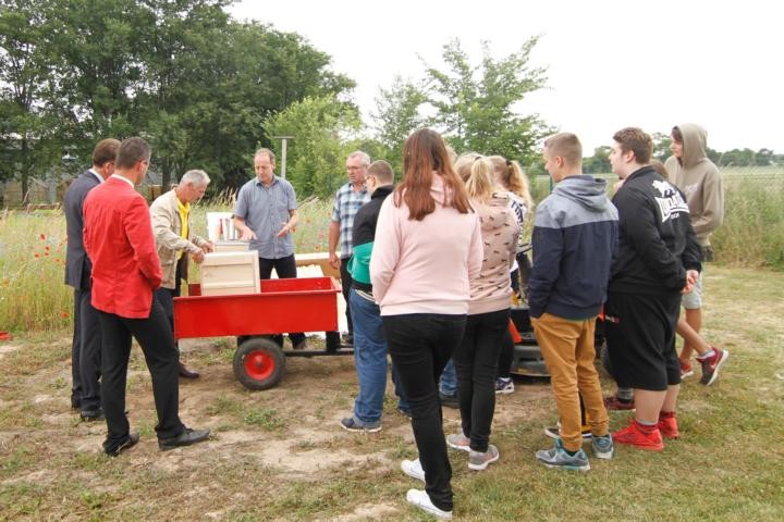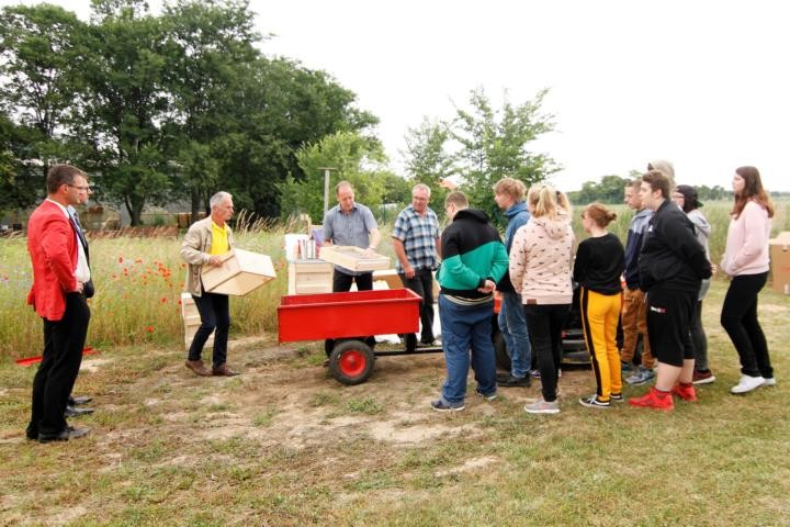 Das Thema Bienen und Honig ist Bestandteil des Lehrplanes. Und es gibt an unserer Schule bereits eine kleine Arbeitsgemeinschaft junger Imker, die nun voll in die Imkerei einsteigen kann, so Schulleiter Klaus-Dieter Ahrent. Wie er und Berufsschullehrer Lutz Lehnert feststellten, können die Jugendlichen beim Beobachten und Mitmachen viel Interessantes erleben, beobachten und erlernen. Eine Blühwiese wurde bereits im letzten Schuljahr angelegt und der Berufsschulgarten bietet den Bienen ein gutes Zuhause.
