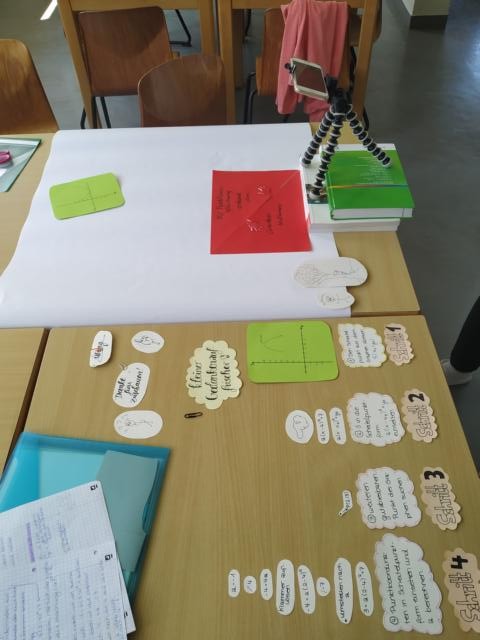 Herr Traubach startete mit uns ein sehr interessantes und auch lustiges Mathematik-Projekt, indem wir in kleineren Gruppen Erklärvideos über unterschiedliche Themen rund um quadratische und lineare Funktionen drehen durften.