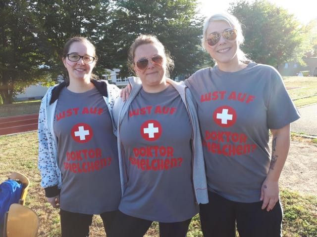 Sogar unsere neuen Rentner, Frau Kipper und Herr Gurk unterstützten uns am 1. Hilfe Stand und als „ Läufer“, wie Herr Gurk sich selbst bezeichnete.