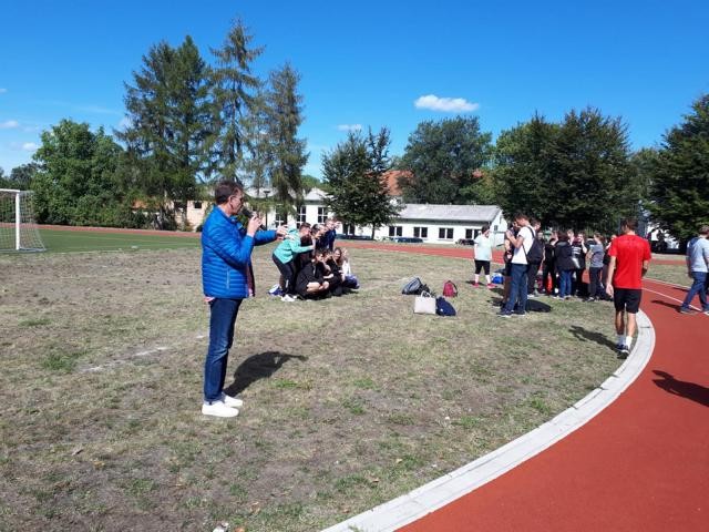 An einigen Wettkampfstätten wurden inmitten der Schüler auch einige Lehrer gesehen. Herr Domke gab sein Bestes beim 2- Felderball, Frau Eggert unterstützte eine Klasse erfolgreich beim Rundenlauf und alle anderen betreuenden Lehrkräfte begleiteten ihre Klassen organisatorisch und motivierend an den einzelnen Stationen. An dieser Stelle ein Dank an alle Beteiligten. Natürlich gilt dieser Dank auch insbesondere den Lehrkräften, die, wie schon im letzten Jahr die Stationen leiteten und für die Auswertung der Ergebnisse zuständig waren. Auch den Mitarbeitern der Kantine , die alle Sportler und Nichtsportler mit Grillgut , Kaffee und Kaltgetränken versorgten und unseren Hausmeistern ein Dankeschön.