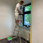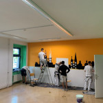 Der Pausenraum der BbS Geschwister Scholl Halberstadt am Standort Neupertstraße sollte neugestaltet werden. Ausgelobt wurde hierzu im Schuljahr 2021/22 ein interner Wettbewerb der Klassen Maler/ Lackierer. Insgesamt nahmen 14 SchülerInnen des ersten Lehrjahres (ML21) und 14 SchülerInnen des zweiten Lehrjahres (MFT20) teil. Nach ersten Ideen und Skizzen der TeilnehmerInnen fanden sich diese in Gruppen zusammen und fertigten insgesamt 6 farbige Entwürfe an, die in der Schule ausgehängt wurden. In einer geheimen Wahl, zwei Wochen vor den Pfingstferien, erhielten alle SchülerInnen der Schule (Standort Neupertstraße) die Möglichkeit abzustimmen. Gewonnen hat ein Entwurf aus der Klasse MFT20 (2. Lehrjahr).
